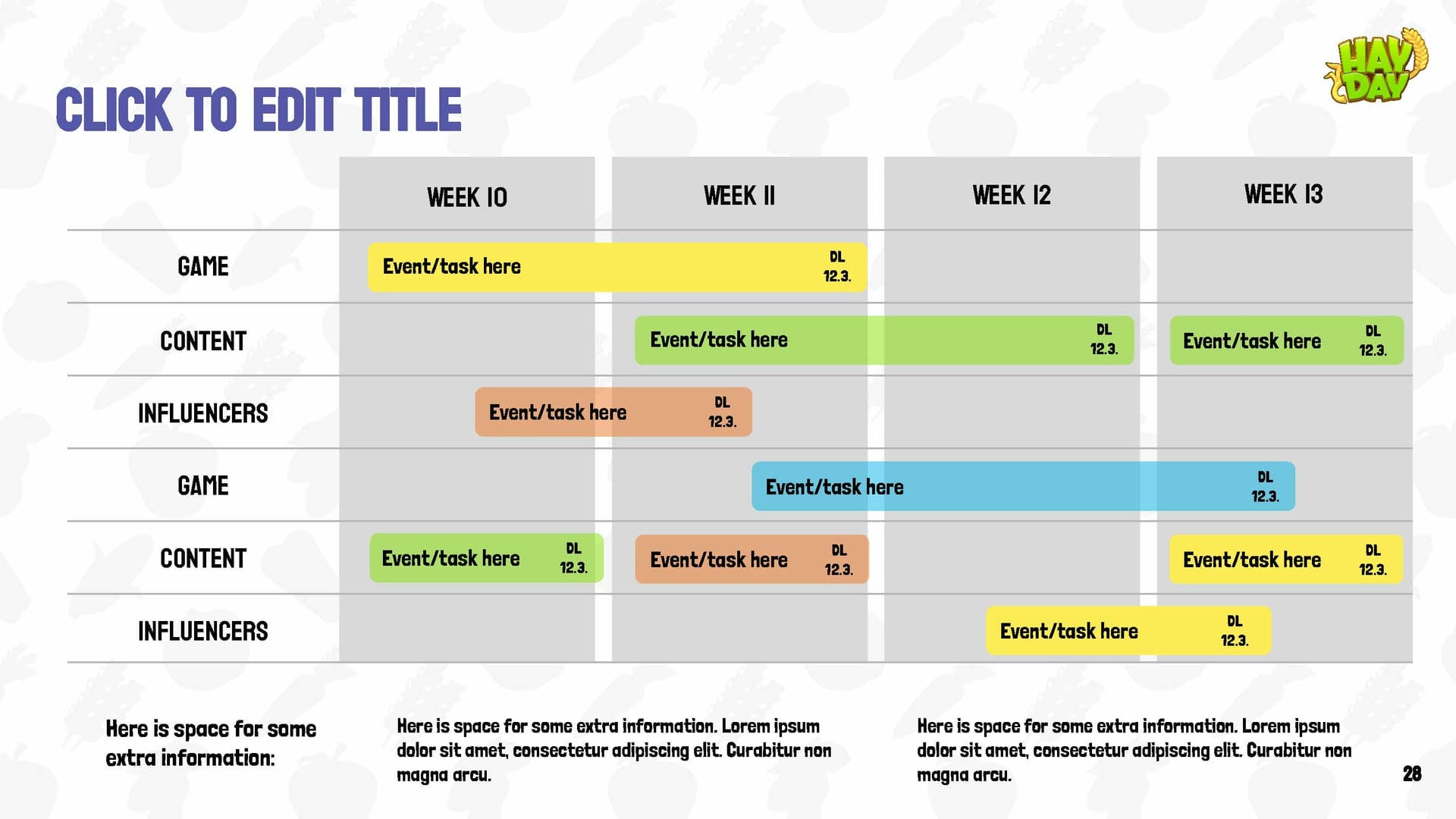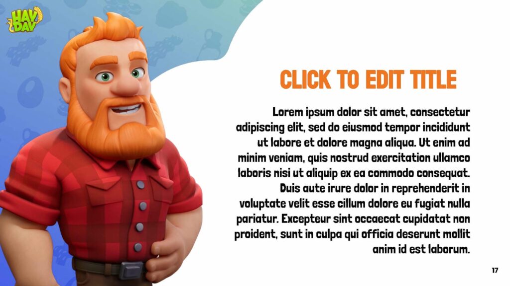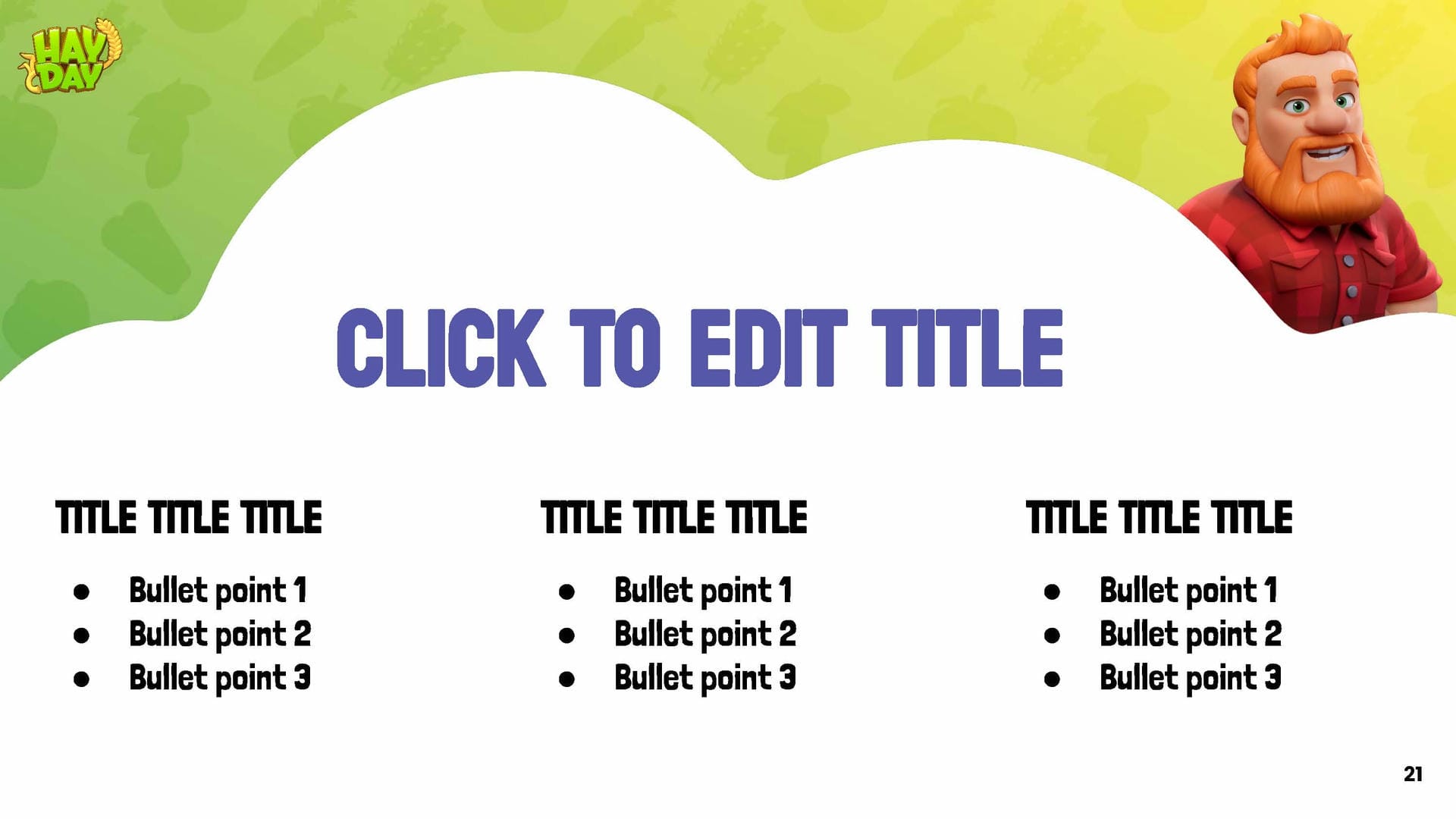 My task was to approach the branding with a fresh perspective, suggest solutions for current marketing challenges, restore consistency in the look and feel of Hay Day's brand and marketing visuals, and capture the game’s unique tone of voice while maintaining its brand integrity.