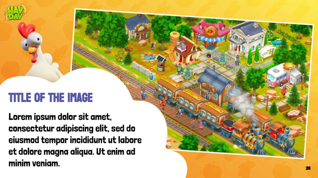 Hay Day is a farming simulation game where players grow crops and feed livestock. They can sell goods in exchange for coins and experience points. By earning enough experience points, players level up, unlocking new features such as crops, goods, and livestock.