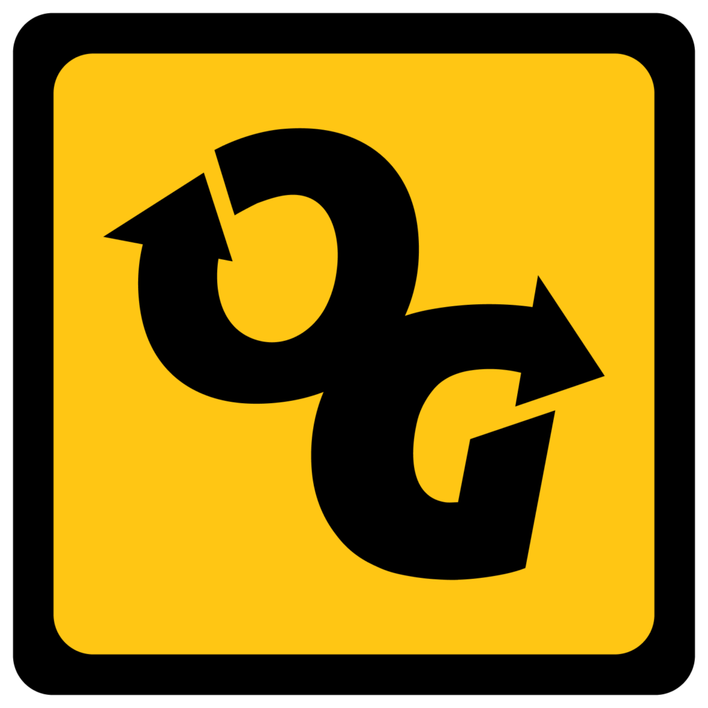 The OG icon is derived from the full logo and designed to resemble a road sign. It is intended for use in thumbnails, profile images, graphic elements, watermarks, and other applications where space is limited, such as square or circular formats. It also serves as a distinctive symbol, making it ideal for merchandise.